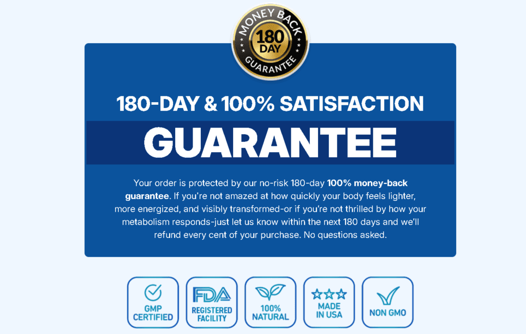 This is crucial because while fat oxidation begins quickly, the most significant “recomposition” of the body—where you actually see the difference in the mirror—happens between the 90 and 180-day mark. The manufacturer is essentially letting you use the product for half a year risk-free. If you don’t see the results, you get every penny back.
